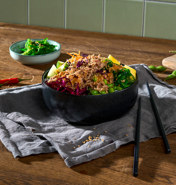 Lust auf eine Poke Bowl? Frisch, vegan und lecker – mit unserem Mühlen Mix no Thuna. Die Toppings kannst du gerne als Vorschlag nehmen. Wenn du Lust hast, werd selbst kreativ und probier etwas aus!