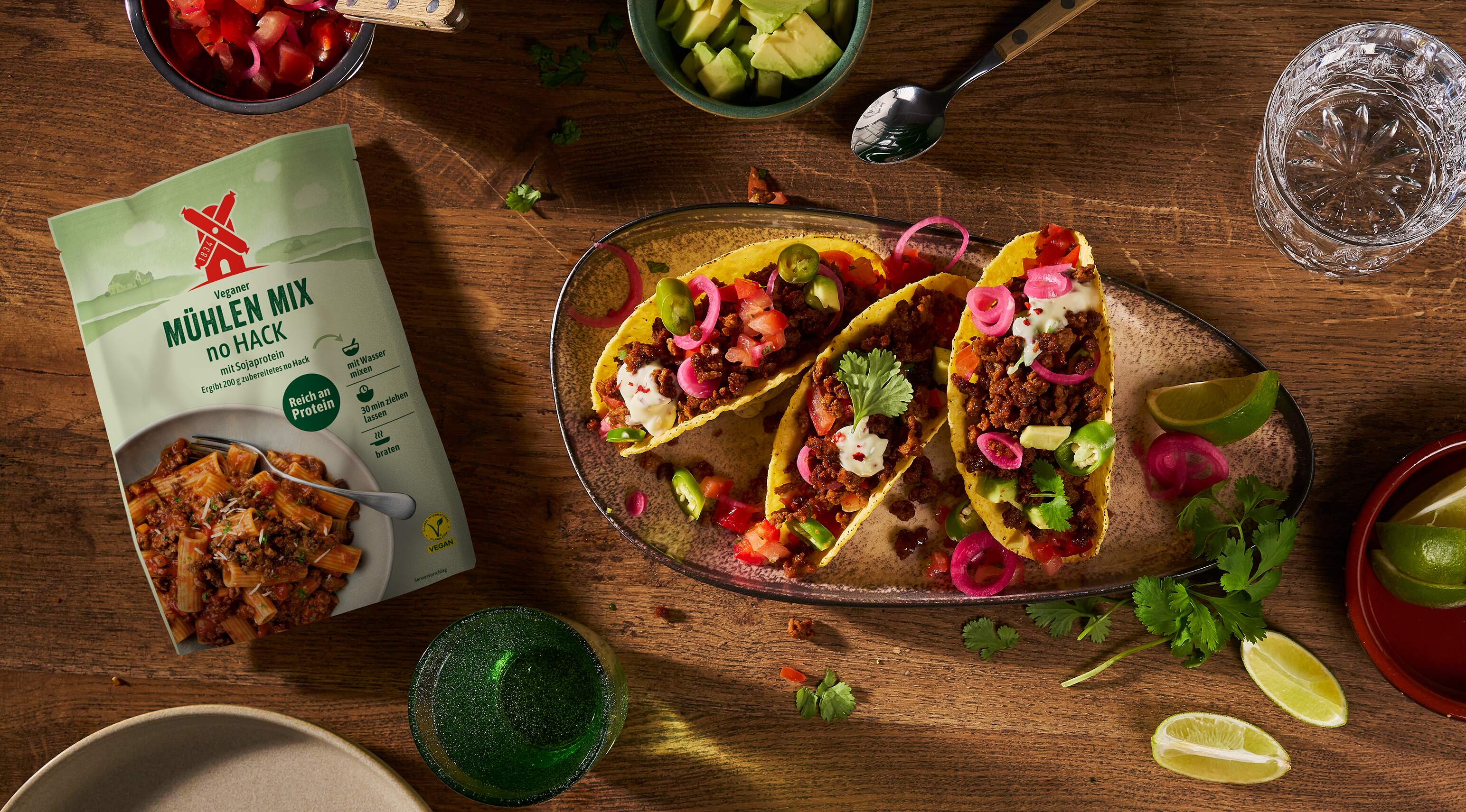 Anmischen, anbraten und genießen – mit dem Veganen Mühlen Mix relauncht die Rügenwalder Mühle Trockenmischprodukte mit Gelinggarantie. Der Vegane Mühlen Mix in den drei Sorten „no Hack“, „no Bacon Bites“ und „no Thuna“ ist ungekühlt lagerbar und in wenigen Schritten schnell zubereitet – ideal für spontane Mahlzeiten oder geplante Vorratshaltung.